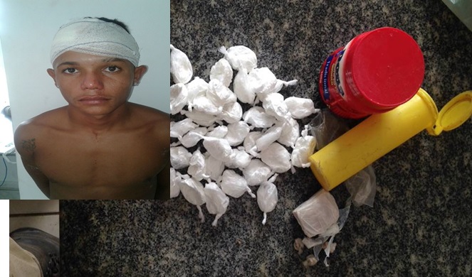 O homem identificado, Cleidejúnior dos Santos Souza, foi autuado em flagrante por tráfico de drogas. Ele já possui passagem na policia por trafico de drogas.